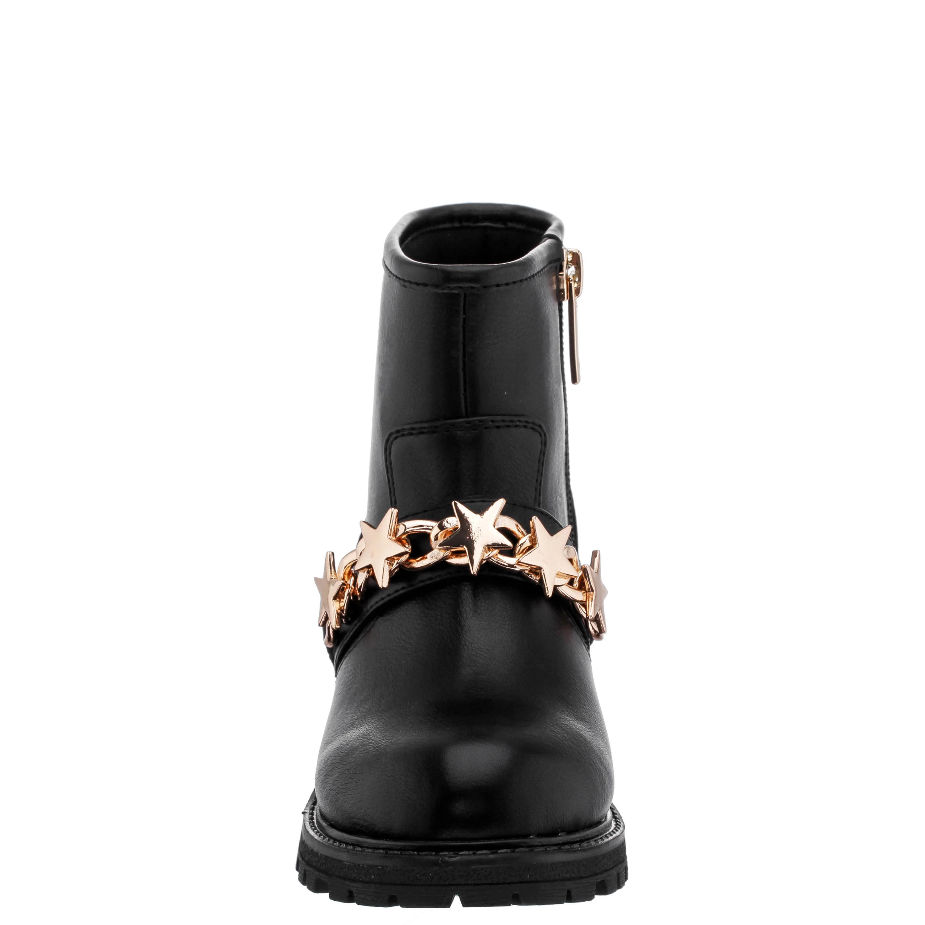 There is nothing basic about this moto boot! This chic bootie with metal star chain detail is totally trend right for Fall! An inside zipper for ease of wear and cushioned memory foam insole add a touch of comfort!